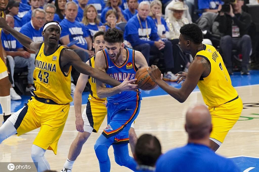 上半场雷霆依然延续着跟G1半场类似的防守强度,他们虽然没有造成步行者大量失误,但利用双塔的体型和衔接段的优势,使得步行者进攻完全失常。